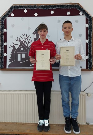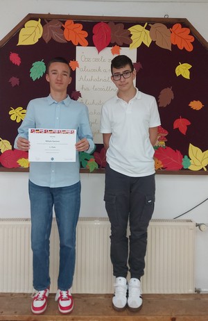 A Zalaegerszegi Ady Endre Általános Iskola, Gimnázium és Alapfokú Művészeti Iskola által szervezett német rejtvényfejtő versenyen Gyenese Mátyás (8.b) és Pénzes Áron (8.c) tanulóink csapatban első helyezést értek el. Felkészítő tanáruk Szalayné Kámán Szilvia.