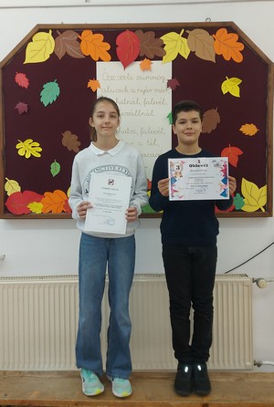 A 4. osztályosok versenyében Bolla Milos (4.c) 2. helyezett lett, Takács Benedek (4.c) a legjobb helyesírónak járó díjat vehette át. Felkészítő: Sóvágó Szilvia